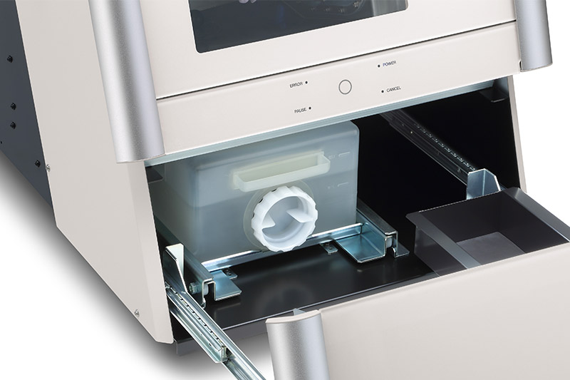 The DWX-4W is equipped with a fully integrated pump and coolant system. The coolant container slides in and out, making it exceptionally easy to regularly replace the coolant. It also features an integrated water collection filtration system for maintaining a clean and efficient workspace.