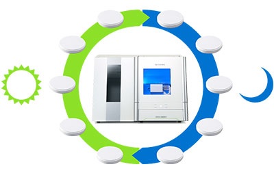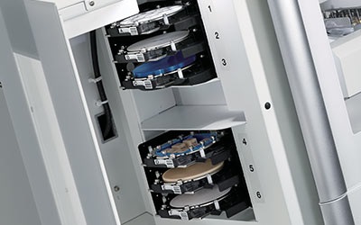 An Automatic Disc Changer (ADC) enables continuous milling of traditional materials as well as gypsum, PEEK, glass fibre reinforced resin, composite resin and CoCr sinter metal material discs and blocks. It also optimizes user workflow by milling different shades of zirconia at once.