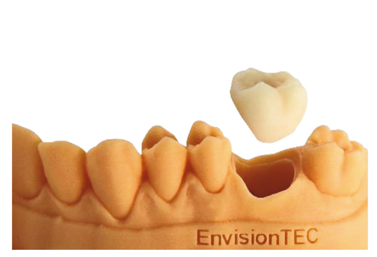 E-Dent 400 is an affordable new material for the direct printing of crown, bridge and full roundhouse temporary restorations.