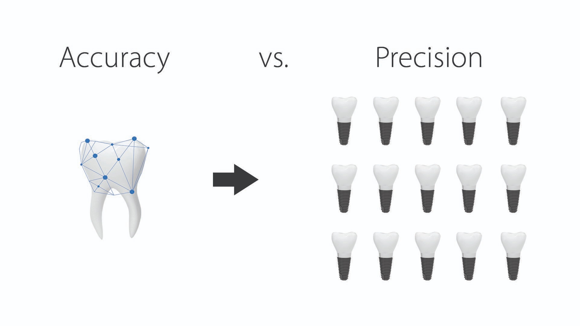 Scanning and getting the correct measurements for the prosthesis on your first try will save you time (accuracy). And if you are able to repeat that each time you scan a certain patient, then you may get referrals and good reviews (precision).